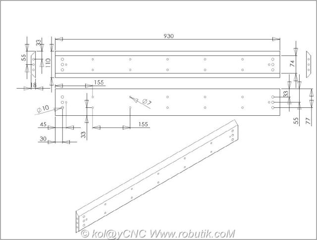 Bu kısımda yapım aşmalarının CAD çizimleri ile birlikte vermeye çalışacağım. CNC nin bazı parçalarını imal ederken değişiklik yapılması gereken yerler oldu. CAD çizimlerindeki düzeltmeleri yaptıkça sitenin bu bölümnde yer alacaktır. Ayrıca yaşadığım tecrübeleride sizlerle paylaşacağım. Umarım bunda sonra çok daha gelişmiş CNC yapılır ve burada paylaşılır.